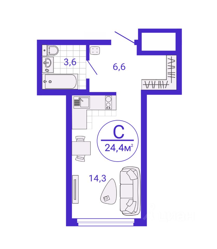 Общая площадь24,39 м2
