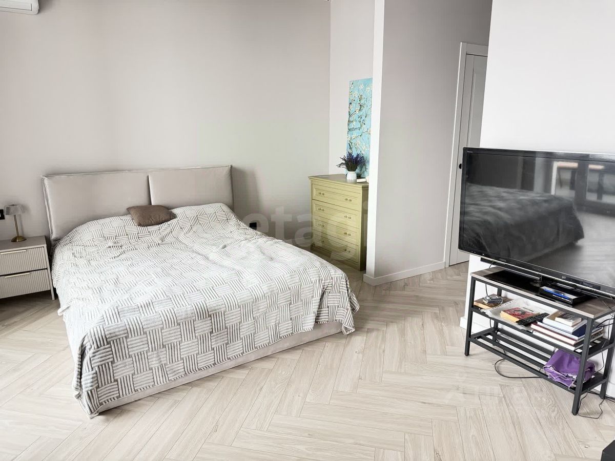 Просторная комната с двумя окнами, с выходом на остекленную лоджию, с видом на закаты. В квартире выполнена качественная отделка, красивый санузел с отделкой керамогранитом и теплым полом. Так же есть гардеробная с отдельным входом и установленной системой хранения. Квартира полностью укомплектована, установлен кондиционер, остается кухонный гарнитур со встроенной плитой и микроволновкой, кровать, стол, в ванной инсталляция, ванна с тропическим душем, зеркало с подсветкой. В доме есть подземный паркинг, закрытый двор на стилобате, круглосуточная охрана.