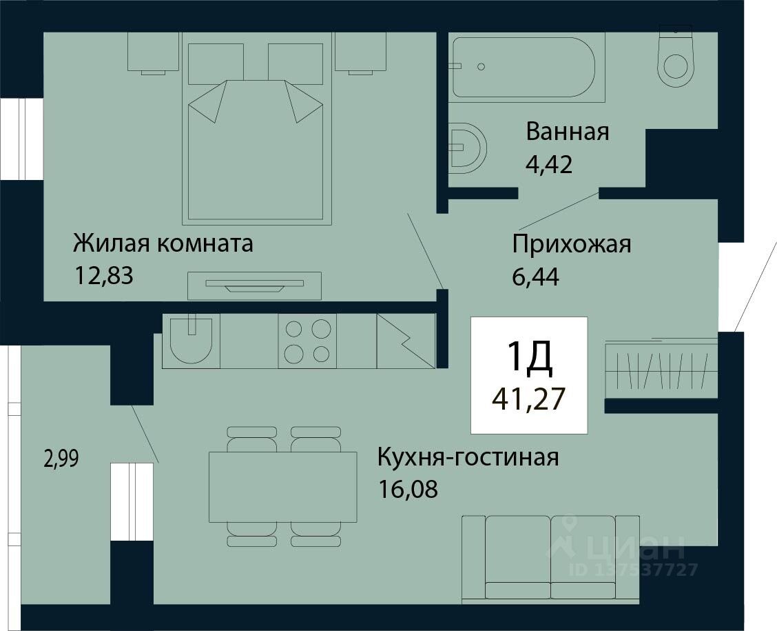 Продаётся 1-комнатная квартира в строящемся доме (Дом 1.1), срок сдачи: I-кв. 2030, общей площадью 41.27 кв.м., на 5 этаже. Новый жилой комплекс ''Айвазовский'' от застройщика ''Ривьера-Инвест-Екб'' расположен по адресу: г. Екатеринбург, Авиационная улица.
