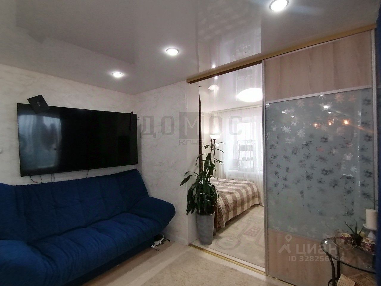 В квартире сделан свежий косметический ремонт. Большая комната объединена с кухней и удачно зонирована на две части.