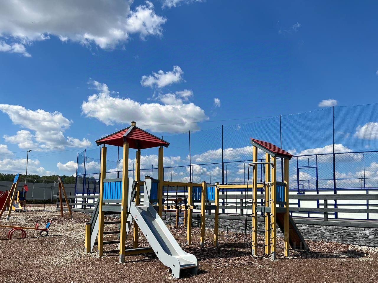 Уютный поселок, окруженный лесом. Охрана, вывоз мусора, освещение, чистка дорог - все организовано. Асфальт до дома. Детские и спортивные площадки, водоем, магазин.